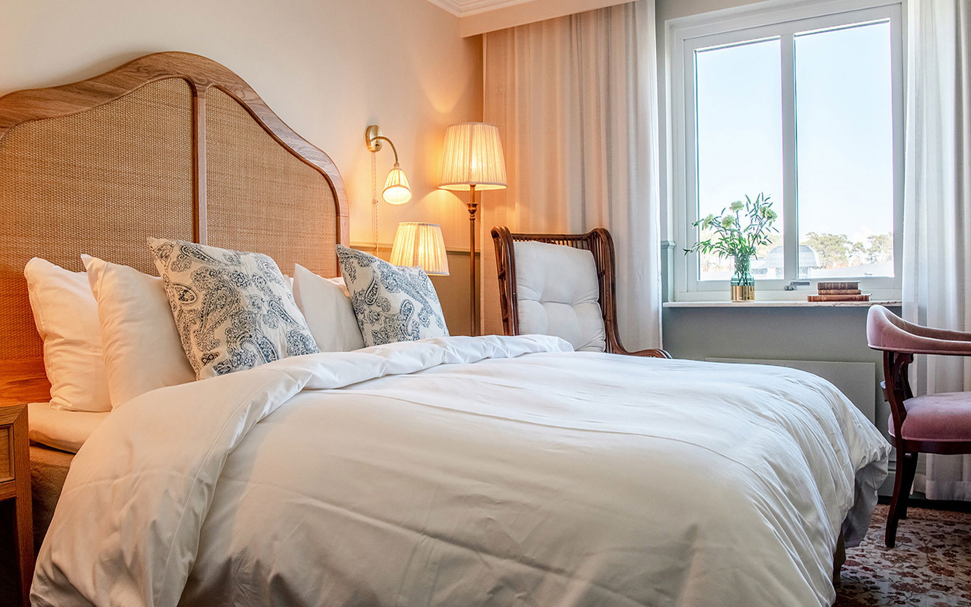 I bliver indlogeret på et af hotellets flotte, moderne værelser, der er indrettet med inspiration i den amerikanske Newport-stil. Samtlige værelser er udrustet med minibar, bad, toilet og tv.