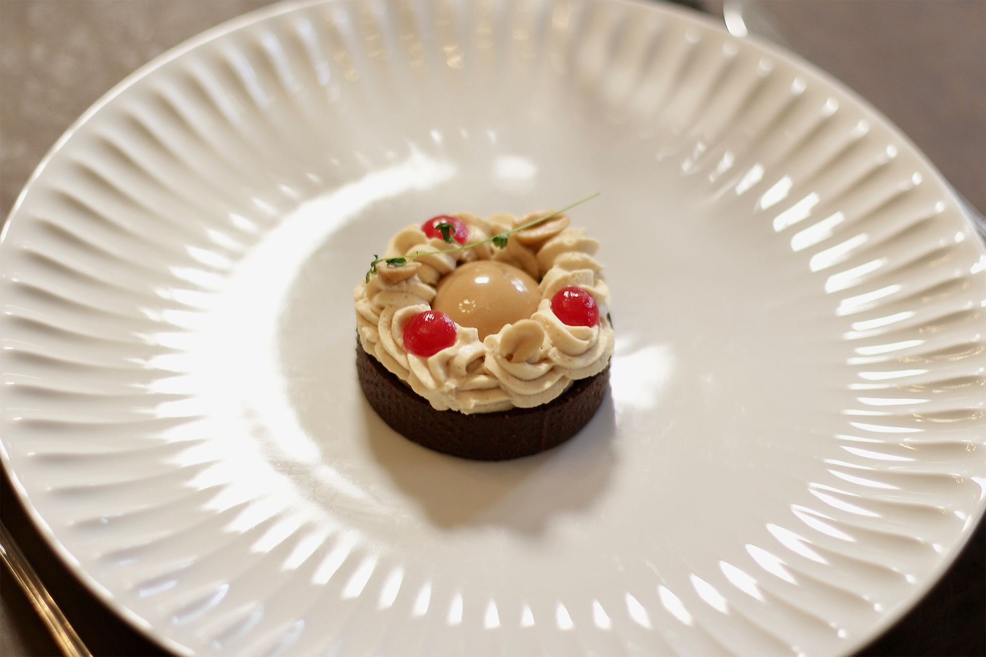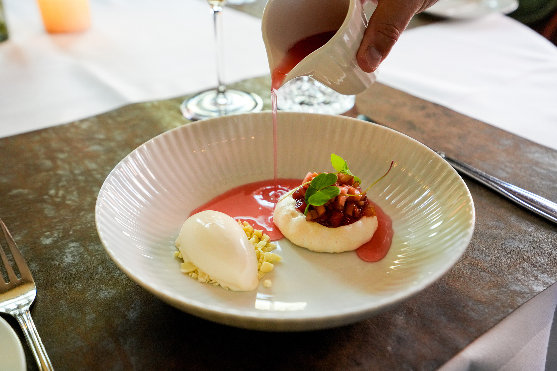 "Vi bliver betjent af to tjenere. Endda er den ene af dem, hoteldirektøren, Allan Jakobsen, der passioneret giver sig tid til at fortælle om maden, og kommer med de ekstra bemærkninger om, hvor råvarerne kommer fra.