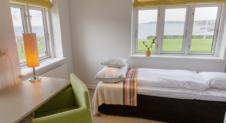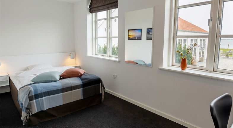 Værelset er udstyret med en 3/4-seng, der er 140 cm i bredden. Mod et tillæg kan I også få et værelse med en seng i fuld størrelse.