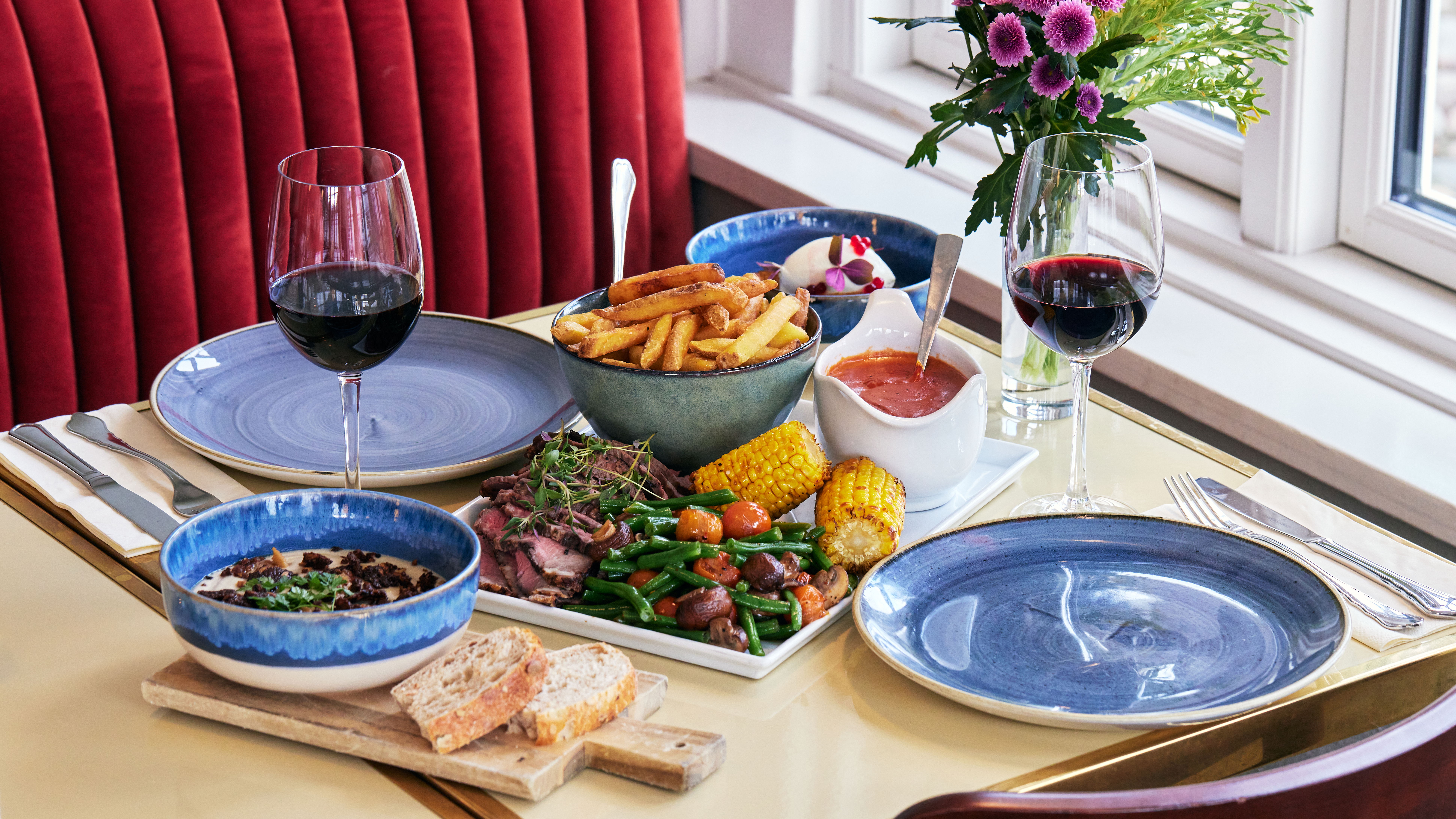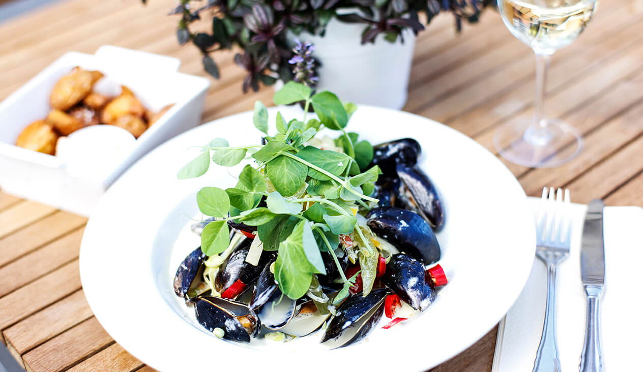 I hotellets restaurant skaber de passionerede kokke gastronomiske oplevelser med inspiration fra både det danske og franske køkken. Restaurantens skiftende menukort afspejler årstidernes bedste råvarer, og I vil derfor ofte kunne finde nye smagsoplevelser på menukortet. Er vejret til det, har I mulighed for udeservering i den stemningsfyldte gårdhave.