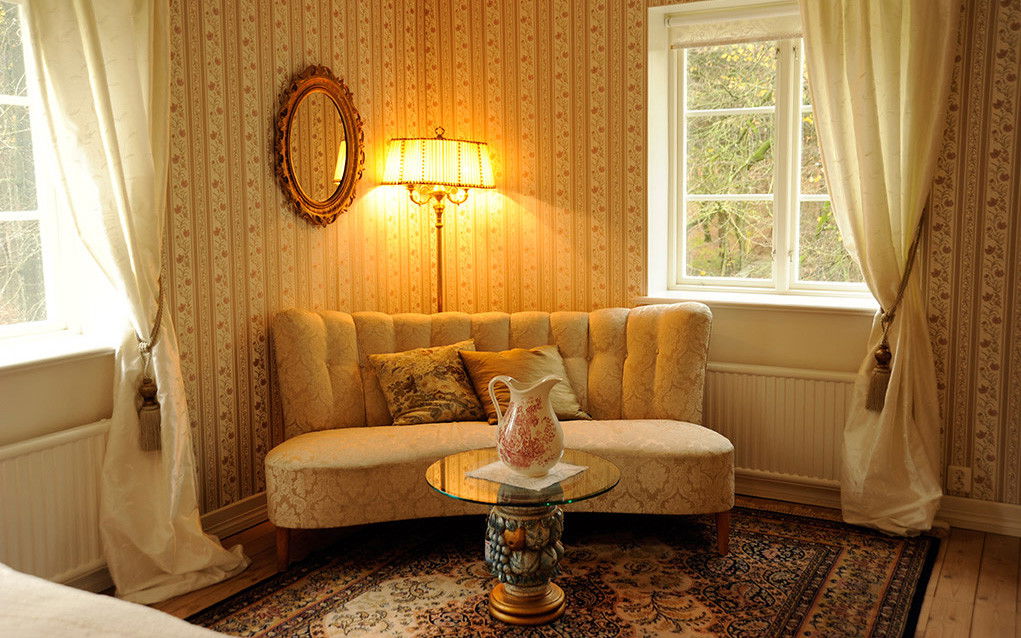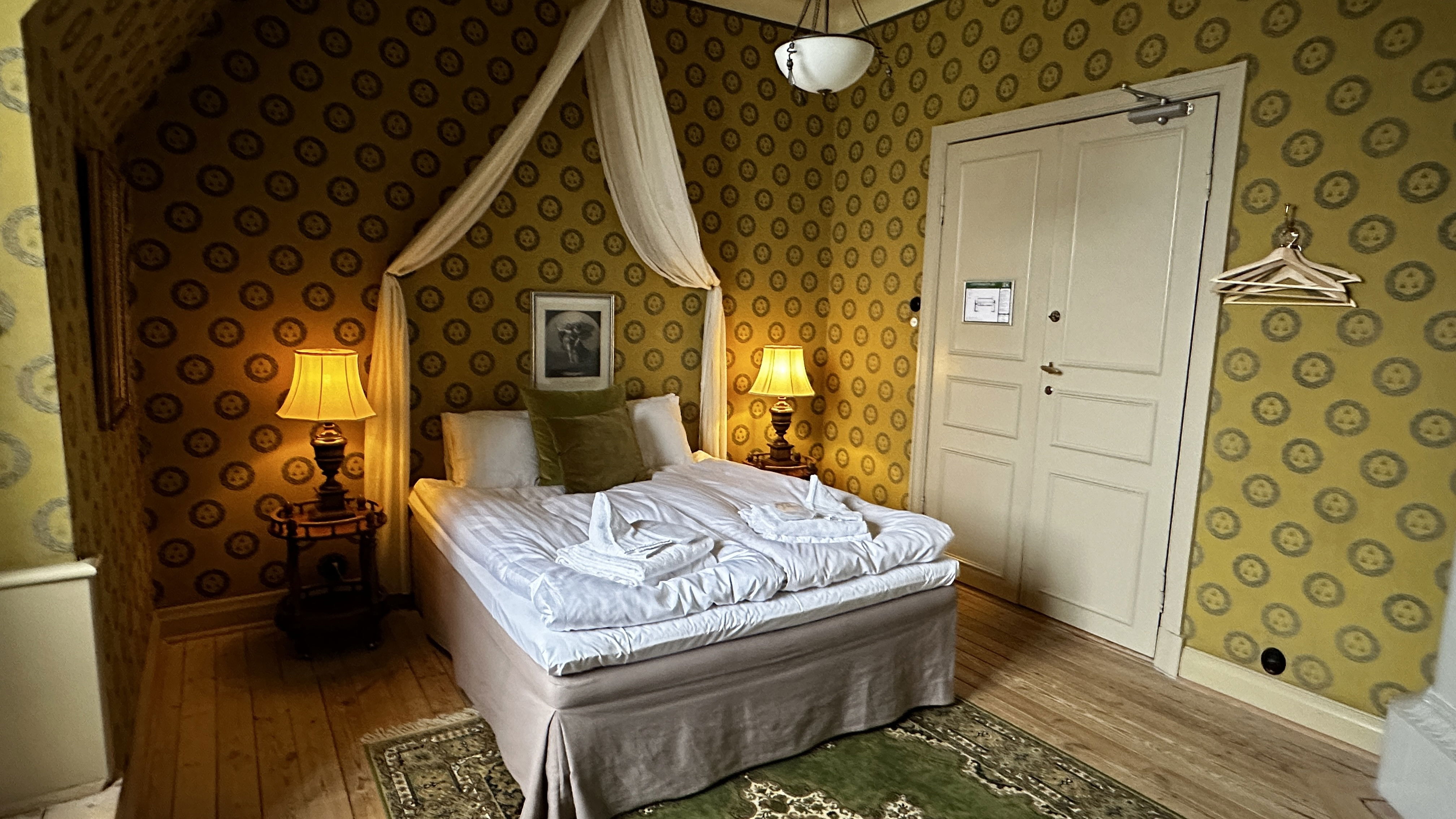 På alle værelser er der senge af højeste svenske kvalitet, og da det er vigtigt for slottet, at I nyder jeres ophold til fulde, tager omgivelserne ind og bruger tiden på hinanden, er der ikke tv på værelserne.