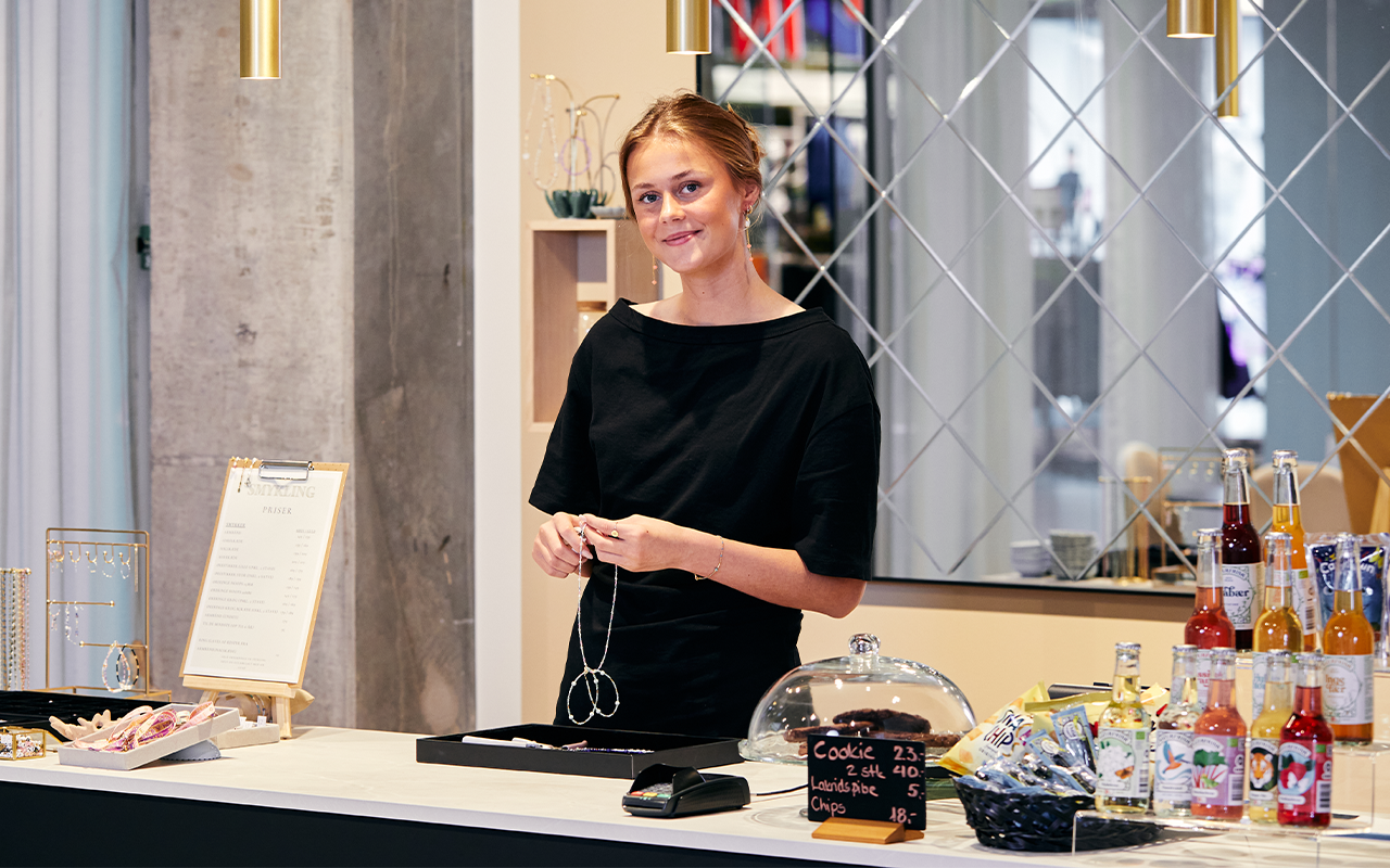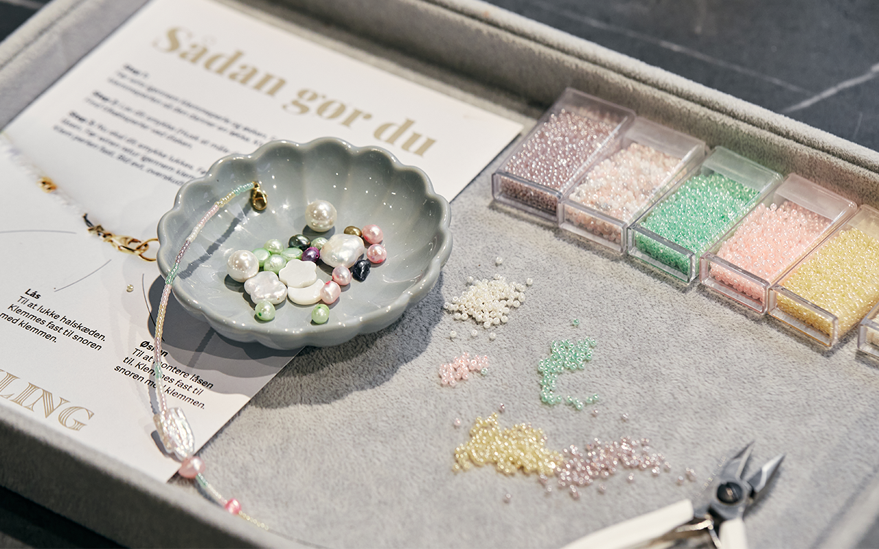Hos Smykling kan du designe og skabe din helt egen halskæde i sterling sølv med eller uden 18 karats guldbelægning. Tilføj ekstra finesse med de smukke ferskvandsperler, som kan tilkøbes på stedet. Gå på opdagelse i smykkecaféen, der har en afdeling både i København og Køge.