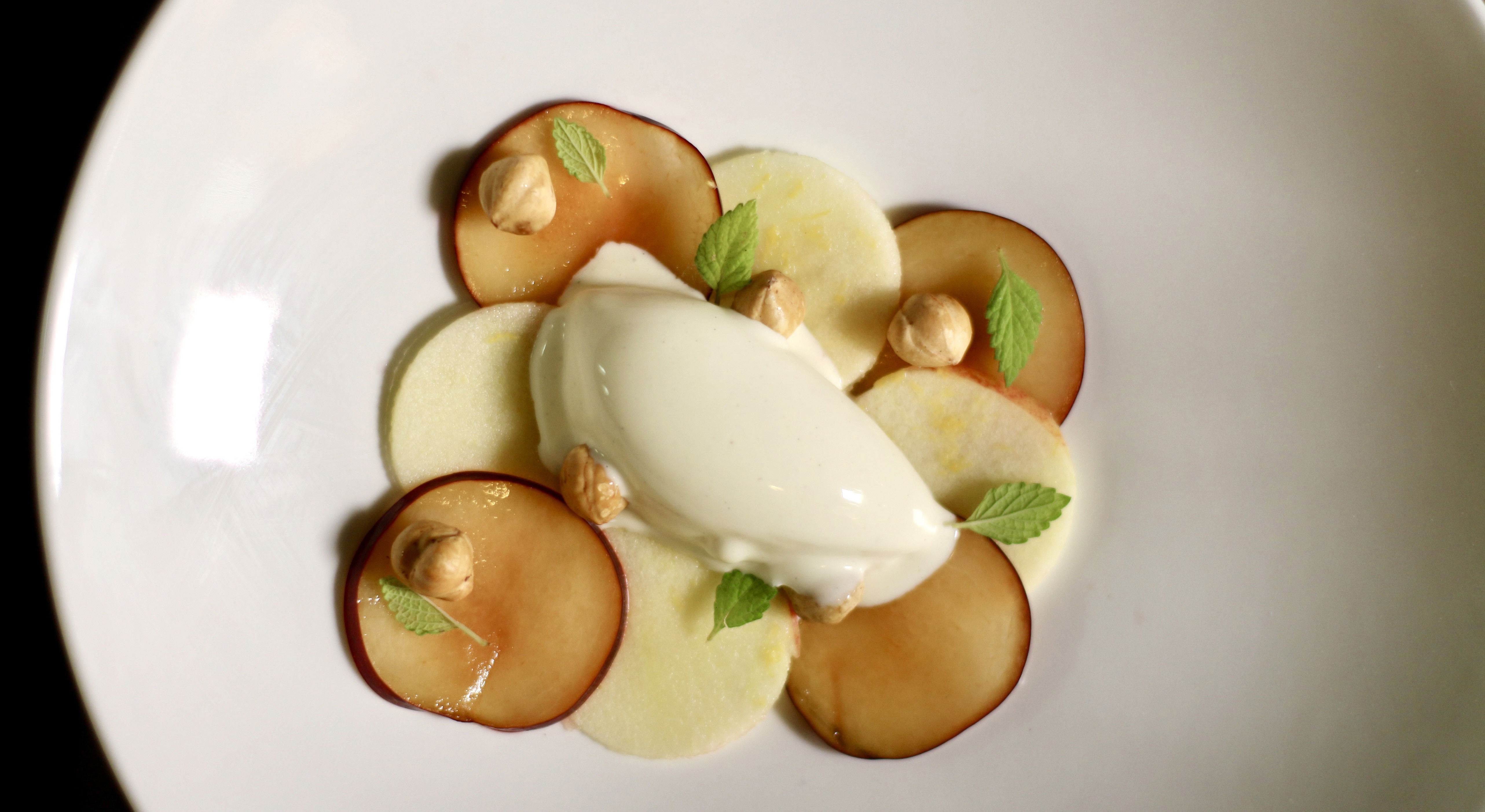 "Vi bliver betjent af to tjenere. Endda er den ene af dem, hoteldirektøren, Allan Jakobsen, der passioneret giver sig tid til at fortælle om maden, og kommer med de ekstra bemærkninger om, hvor råvarerne kommer fra.