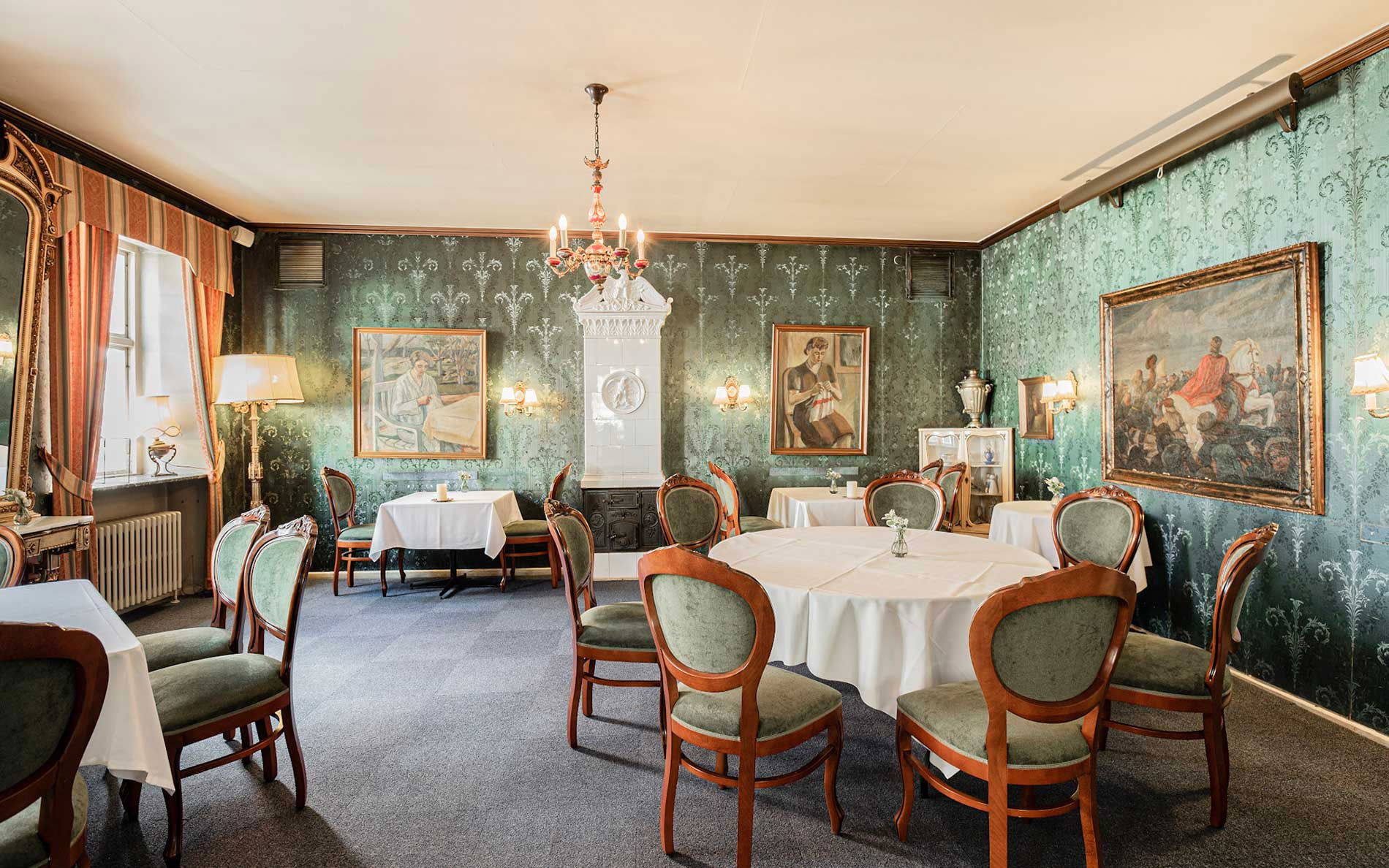 Charmerende lokaler i original historisk stil er sammen med dygtige og opmærksomme tjenere med til at gøre din aften til en oplevelse, hvad enten det drejer sig om en romantisk gourmetmiddag for to i Restaurant Dagmar, en hyggelig aften i Vægterkælderen, en rund fødselsdag eller et smukt bryllup.