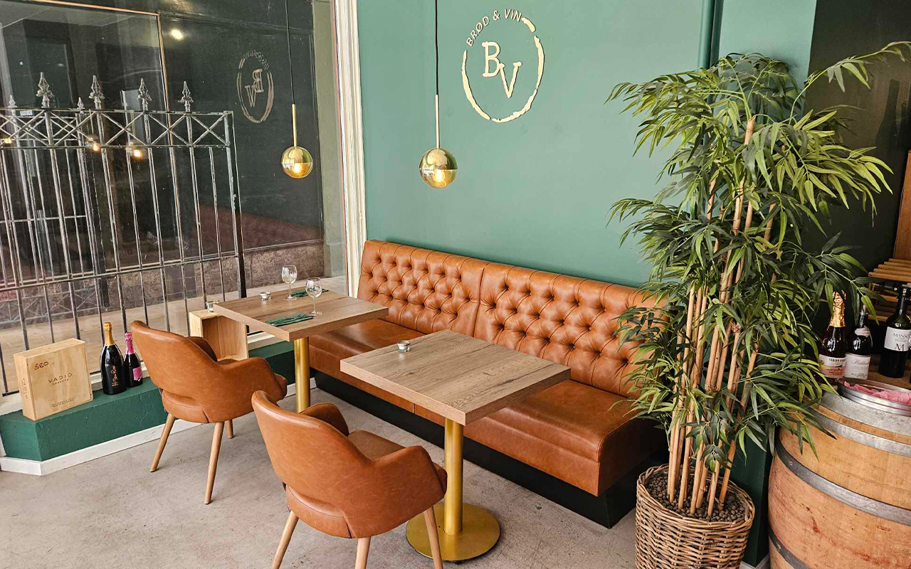 Brød og vin er Haderslevs nye alt muligt-restaurant. Det er et lille sted med hygge, service, god mad og lækker vin i fokus. I dagstimerne serveres der smørrebrød, sandwich, tapas og få lune retter. Det er ligeledes en fin vin bar og butik med egen import og med dygtige sommeliers bag.