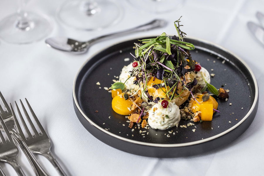 Og der er ingen tvivl om, at det er en madoplevelse af de helt store, når I oplever, hvordan der er blevet tryllet med råvarerne i køkkenet, og hvordan råvarerne er blevet tilberedt til retter, der både favner det traditionelle og det moderne danske køkken. Menuen skifter fra dag til dag, men om sommeren kunne et bud på en servering være bagt torsk med brunet smør og kalvefilet med sennepsglace, blomkålspuré og nye kartofler.