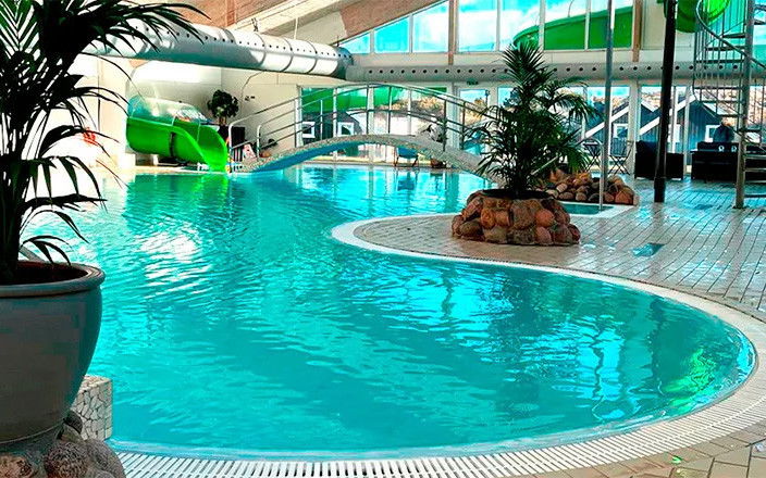 Dancamps Nordsøs badeland byder både på en populær rutsjebane, som snor sig ud og ind af badelandet, samt et dampbad og en sauna, børnebassin og et morskabsbassin. Hermed er I sikret nogle herlige timer i vandet - uanset vejr og vind.