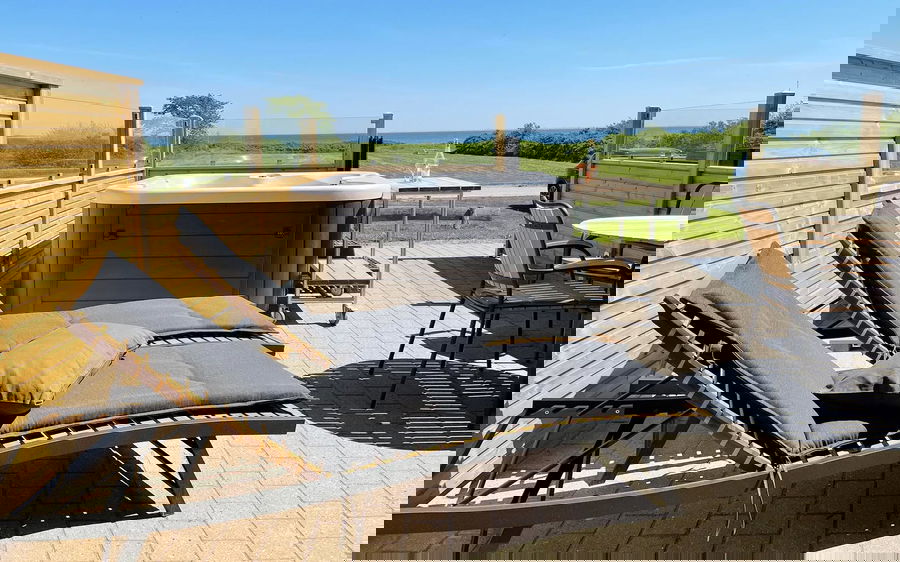 I befinder jer ved naturskønne Kattegat med fuld opvartning i form af bobler, snacks, aftensmad (hvor du kan vælge mellem tre retter) med vin eller øl - og opvarmet udendørsspa med havudsigt. Fra den skønne terrasse har I en smuk panoramaudsigt over Kattegat til Samsø og Tunø, som I sent vil glemme.