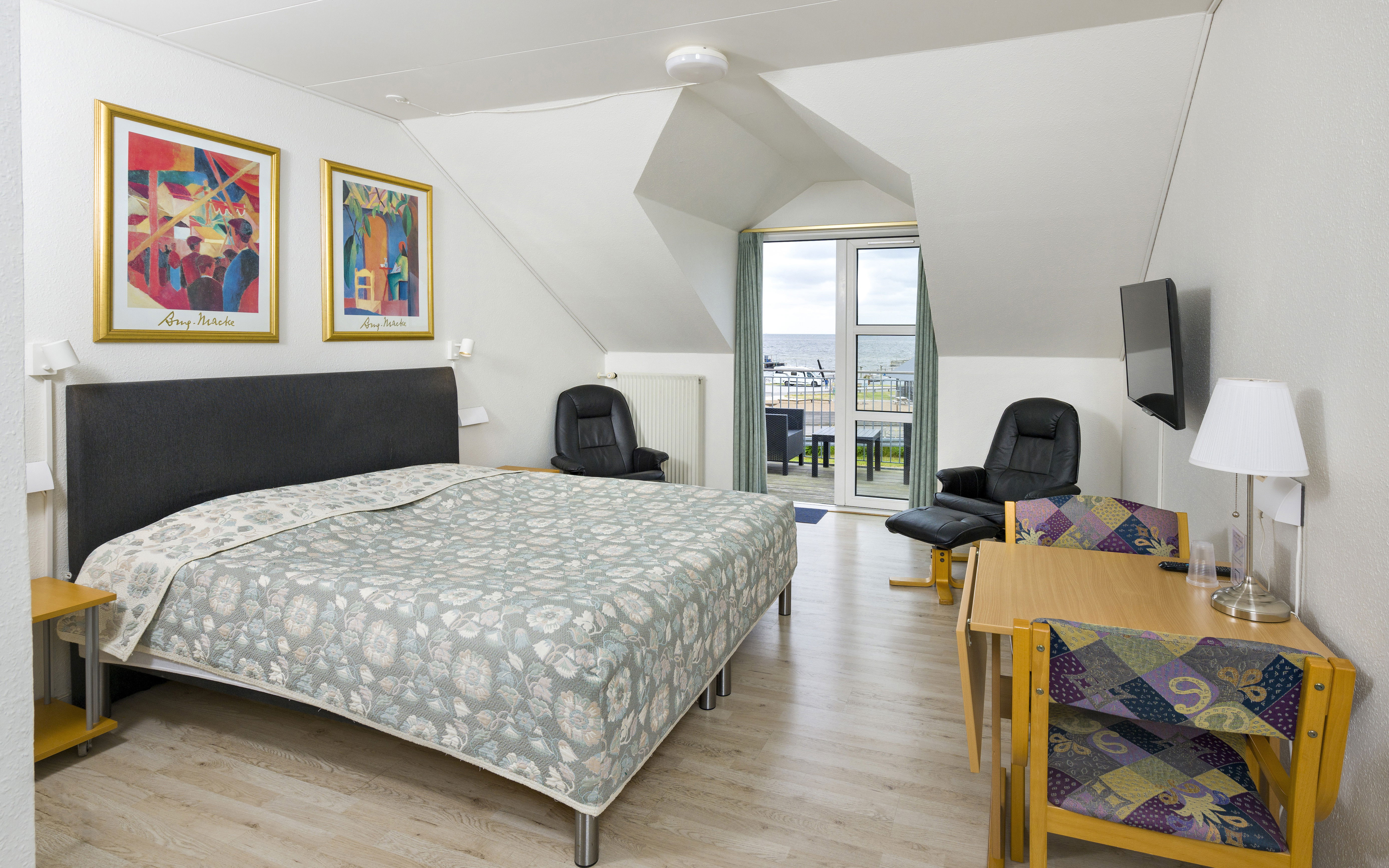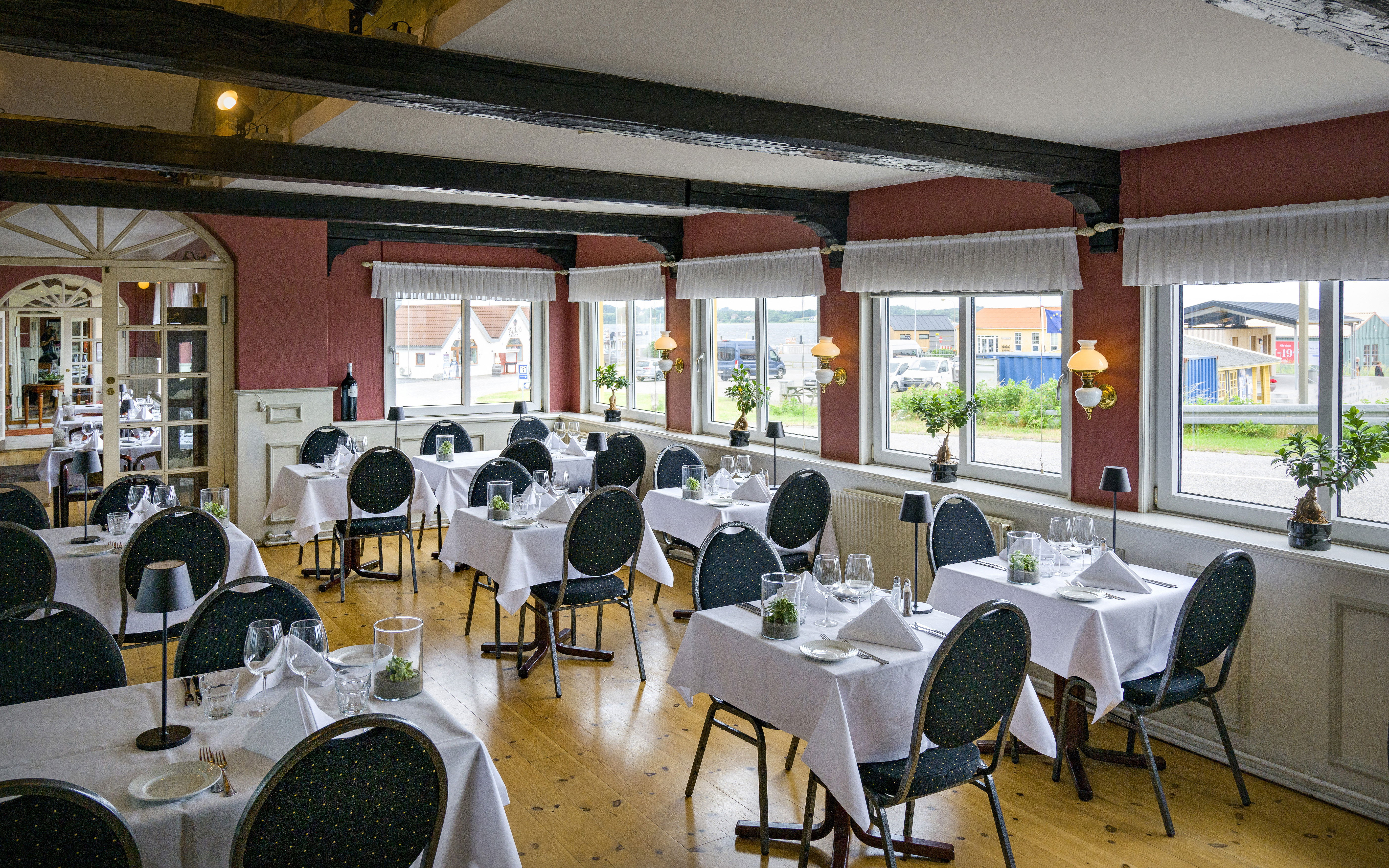 Fra færgekroens restaurant er der også udsigt til havnen, og I kan roligt glæde jer til den inkluderede gastronomimiddag, ligesom det er en fryd at stå op til den morgenbuffet, der er inkluderet i opholdet.