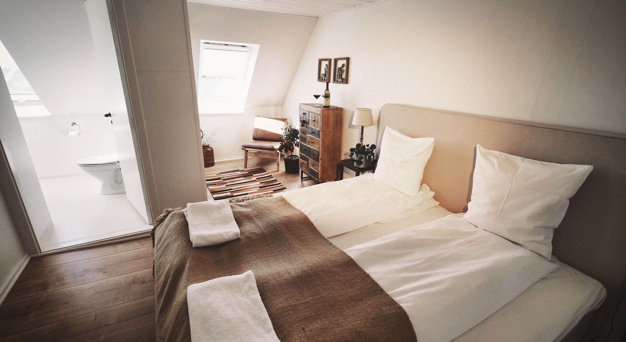 Nætterne tilbringes i et af hotellets lyse og lækre værelser, der alle er stilrent indrettede og behageligt lyse, og som omslutter jer i en indbydende, hjemlig atmosfære.