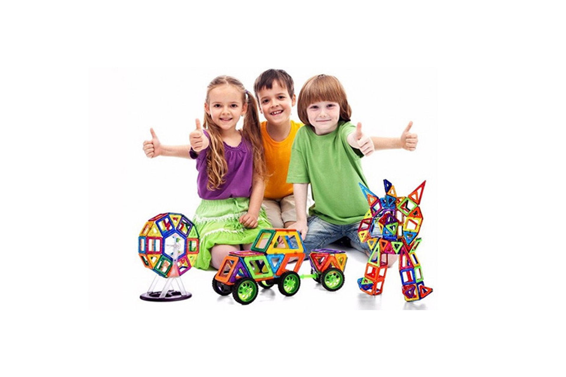 Der kan bygges utallige varianter af 2D plane former eller 3D geometriske strukturer. Det er et ideelt stykke legetøj til børns kreativitet og hjerneudvikling, og så er det samtidigt sjovtog nemt at bruge.