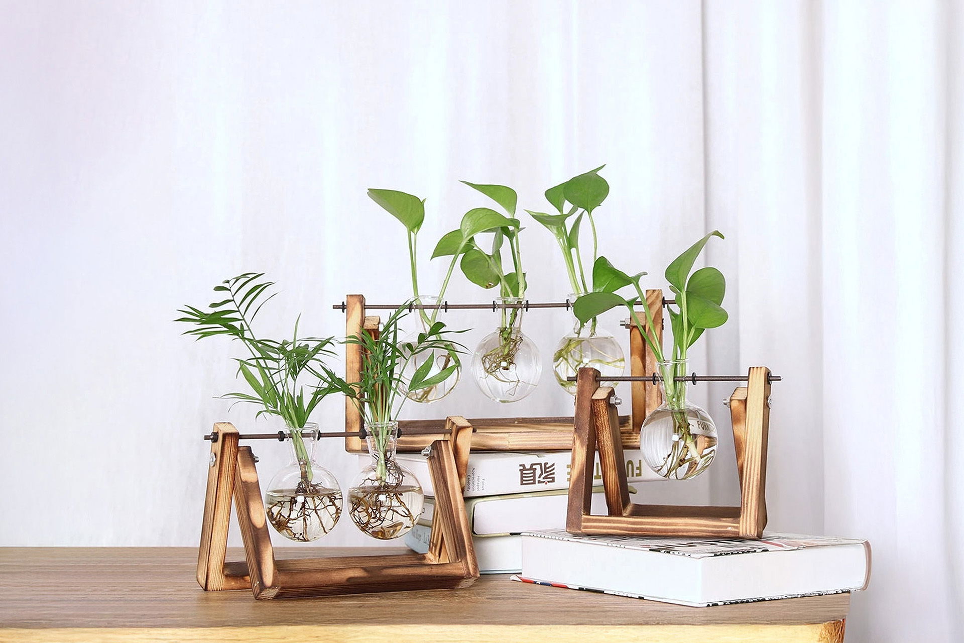 De flotte stiklingsvaser fås i tre fine design - med et naturligt look og den yndige bobbel-formede glasvase til dine stiklinger. Klip eller skær en stikling af dine yndlings planter, sæt dem i vand i stiklingsvasen, og følg udviklingen, når den begynder at danne rødder, indtil den kan plantes igen!