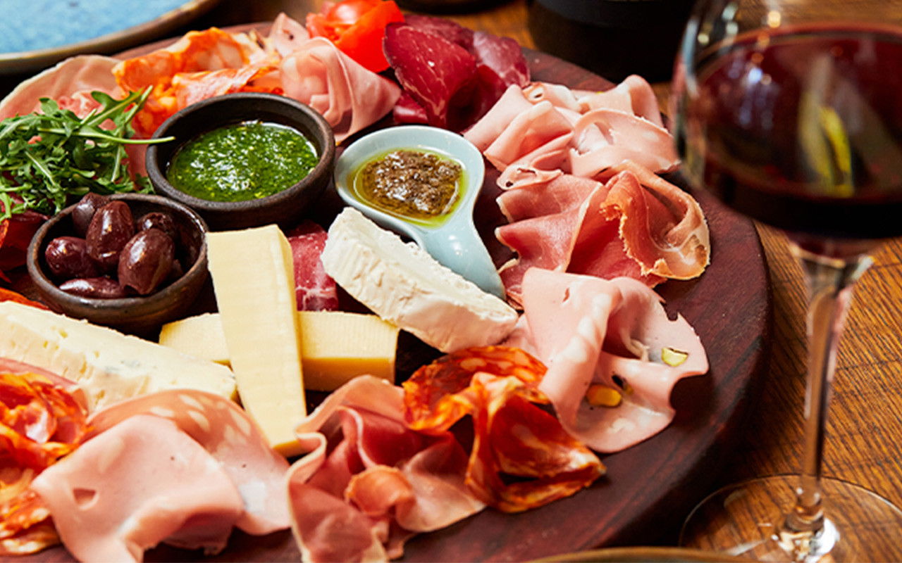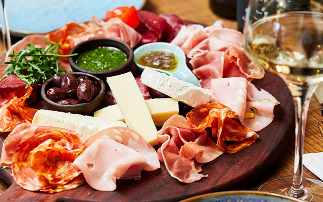 Her kan I nyde hinandens selskab over en delikat tapasanretning fyldt med sydlandske delikatesser som f.eks. italiensk salami, lækker Bresaola, smagfuld Gorgonzola og meget mere. Udvalget varierer fra dag til dag, så I får dagens mest friske lækkerier.